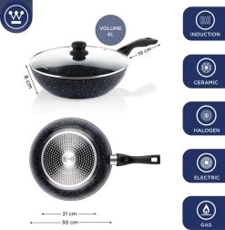 Westinghouse Wokpan Inductie – Ø 30 Cm – Zwart Marmer – Met Deksel