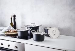 De BK Bistro Pannenset – 5-delig is een exclusief voor Bol.com samengestelde pannenserie waarin jij dagelijks jouw culinaire gerechten gemakkelijk kunt bereiden. De pannen hebben een stijlvol eigentijds design, staan prachtig op ieder fornuis en zijn van alle gemakken voorzien. Daarnaast is deze pannenset inductie geschikt.