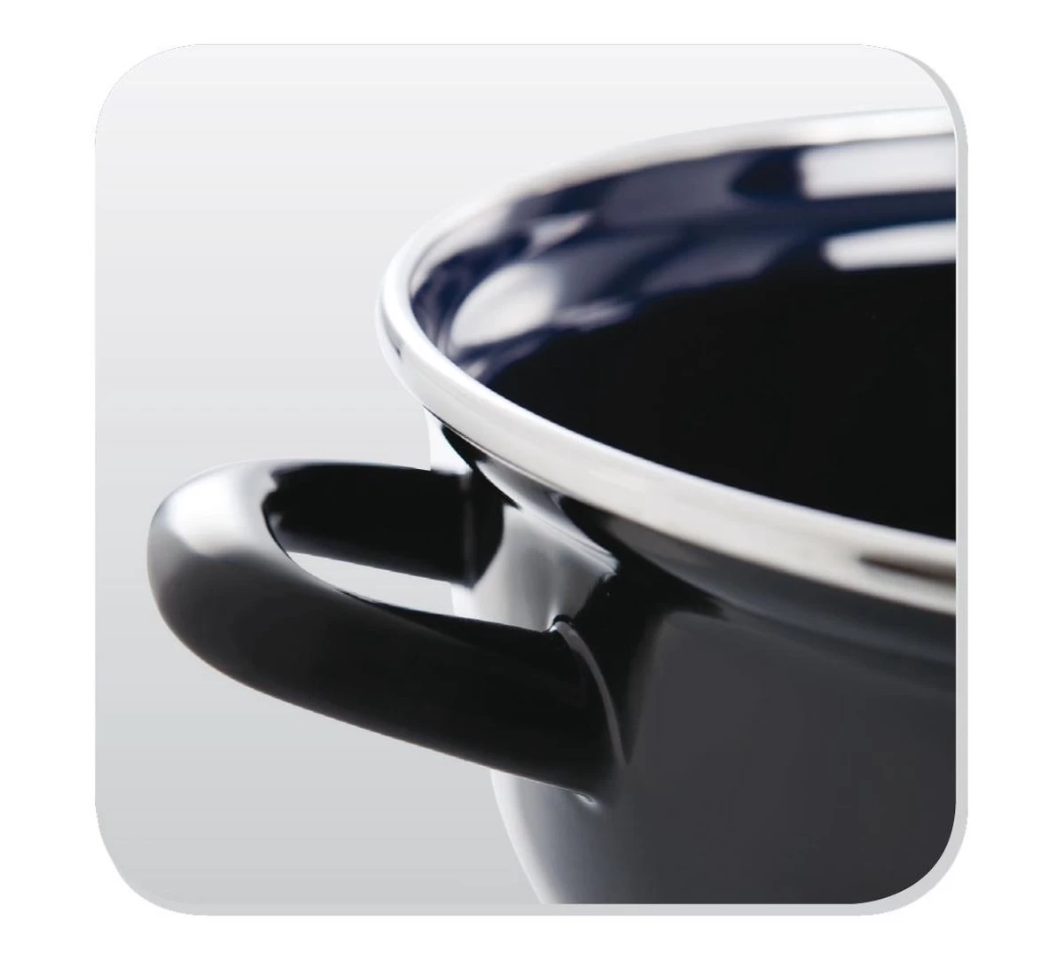 - Gemaakt van zwart geëmailleerd staal