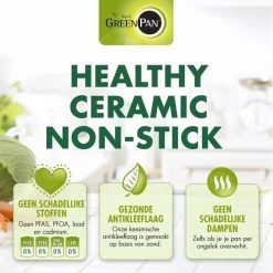 Gezond koken? Dan is een pan van Greenpan onmisbaar! Goed kookgerei is essentieel bij het bereiden van de heerlijkste, gezonde gerechten. Het mooie design en de fijne kook- en bakresultaten zorgen dat de producten van Greenpan een aanwinst zijn in iedere keuken: van professionele chef tot foodies en liefhebbers van het goede leven, er zit voor iedereen een pan bij. Met de fijne Thermolon™ keramische antikleeflaag zijn de pannen vrij van schadelijke stoffen zoals PFOA, PFAS, lood of cadmium en maak jij in eigen keuken de lekkerste gerechten klaar.