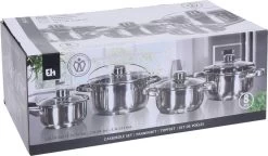 Deze mooie pannen van Herzberg zorgen voor een stijlvolle keuken. Beide sets zijn voorzien van RVS pannen met subtiele strepen over de gehele breedte. De glazen deksels met RVS handgrepen maken deze stijlvolle look helemaal af. Naast hun mooie uiterlijk, zijn de pannen ook nog eens erg praktisch. Ze gaan dankzij het roestvrije staal jarenlang met je mee en omdat ze krasbestendig zijn, blijven ze nog lang hun mooie looks behouden. Ben je bovendien klaar met koken, maar heb je geen zin in de afwas? Dan kun je de pannen gewoon kwijt in de vaatwasser.