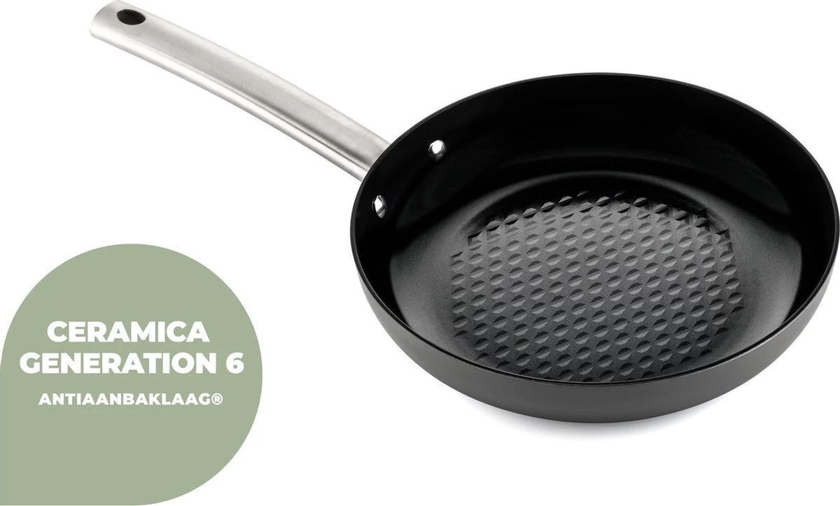 Aangezien de keramische antiaanbaklaag Ceramica Generation Six ®, veel sterker is dan een traditionele antiaanbaklaag, kan het gebruik van een metalen voorwerp in de pan niet zoveel kwaad. Let op! Het kan bij zeer frequent en hard gebruik van metalen voorwerpen in de pan, dat de antiaanbaklaag eerder aan slijtage onderhevig zal zijn.