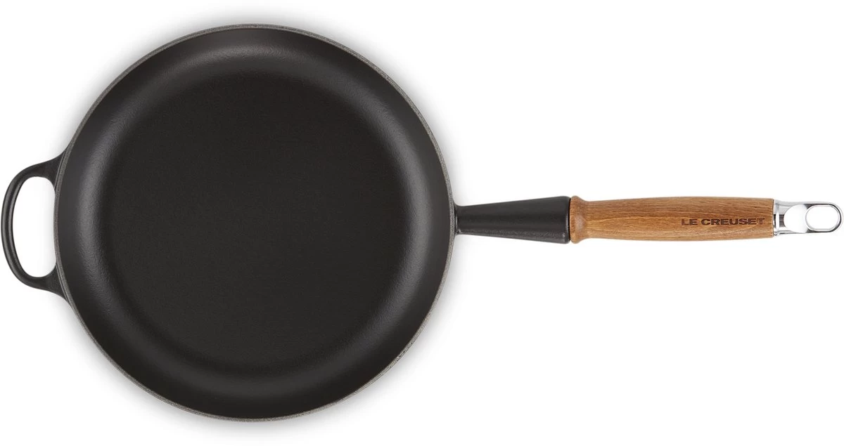 Le Creuset Koekenpan Signature Mat ZwartDeze Le Creuset Koekenpan Signature in het mat zwart is een uitstekende keuze voor allerlei dagelijkse kooktechnieken, waaronder bruinbakken en braden. De koekenpan heeft een diameter van 28 centimeter en een inhoud van 2.6 liter. Hij is vervaardigd uit geëmailleerd gietijzer. Dit materiaal verdeeld de warmte gelijkmatig en zorgt ervoor dat de buitenkant van je eten snel dichtschroeit. De pan houdt vocht, voedingsstoffen en smaak vast voor onvergetelijke gerechten.
