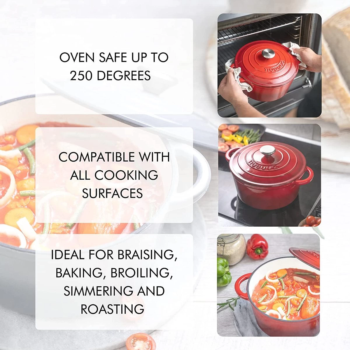 Waarom is dit product voor jou? Of het nu voor professioneel gebruik of voor thuiskoken is, onze hoogwaardige pot van diepgegoten aluminium is een must in elke keuken. De NUOVVA-pan met antiaanbaklaag zal u verrassen met zijn veelzijdigheid en functionaliteit. Het is een perfect lichtgewicht en strak ogend alternatief voor een traditionele gietijzeren pan of braadpan en is zoveel nuttiger en gemakkelijk te onderhouden en schoon te maken. Ideaal voor het aanbraden, bakken, sudderen, smoren, bakken, braden en braden van allerlei heerlijke gerechten! Onze aluminium pot is 100% antiaanbaklaag en is supergemakkelijk schoon te maken en te onderhouden zonder dat je hem hoeft te kruiden, hij is compatibel met alle soorten gasfornuizen en elektrische fornuizen en is zelfs ovenbestendig, dus je kunt hem gewoon in je oven zetten om maak je favoriete gerecht!