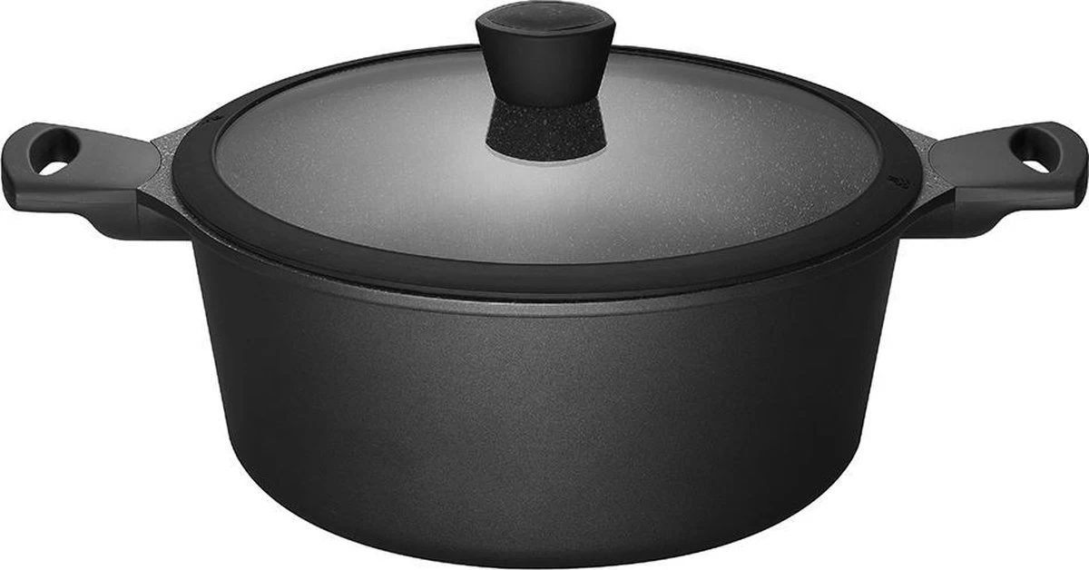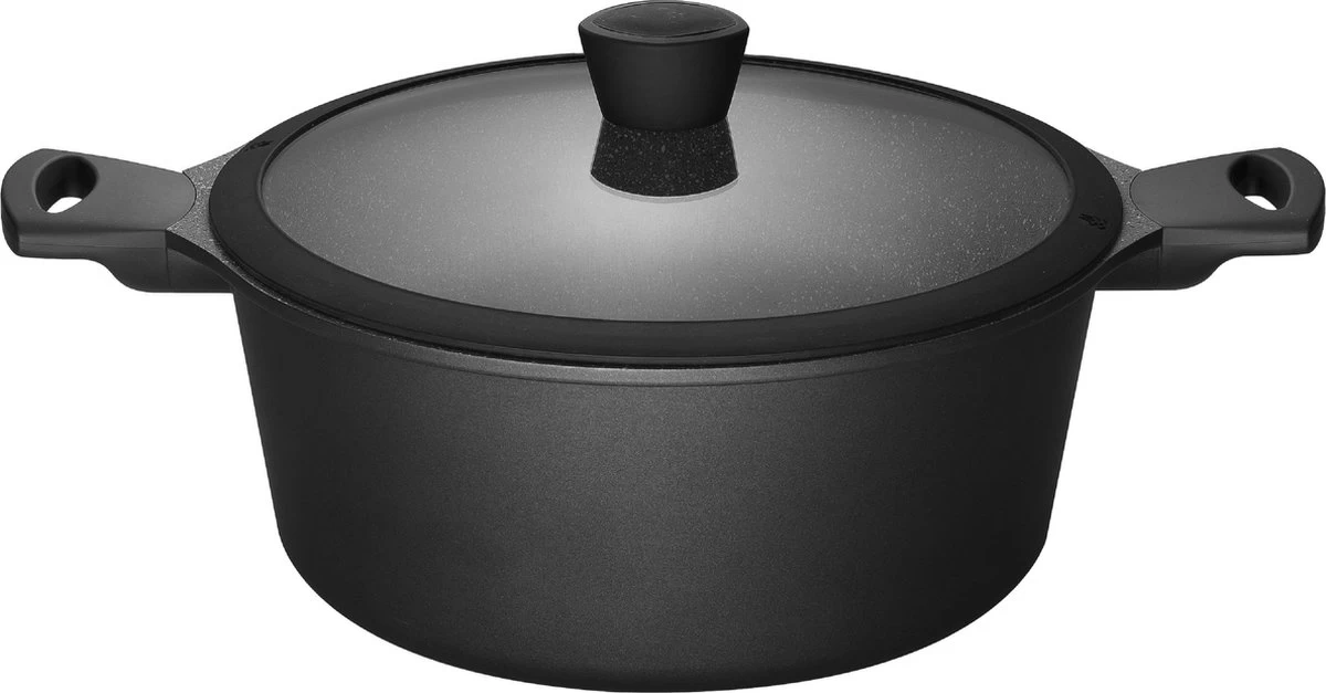 De Fair Cooking serie is de meest hoogwaardige bak/braadpannenserie die we tot nu gemaakt hebben. Wat deze pannen uniek maakt is de combinatie van de gegoten aluminium vorm, de geavanceerde Greblon antistick coating en de meegegoten steelbevestiging. Deze pannen zijn geschikt voor alle warmtebronnen. De gegoten aluminium behuizing is extra dik om zorg te dragen voor een goede warmteverdeling (geen hotspots!), ook blijft deze hierdoor vormvast bij snelle temperatuurwisselingen. In de bodem is RVS plaatstaal verwerkt om een goede werking op inductie te garanderen. Het aluminium warmt snel op zodat u tot wel 40% energie bespaart! Dankzij de meegegoten steelbevestiging is de steel extra stevig verankerd, wel zo veilig! Inhoud: ± 5,5 liter