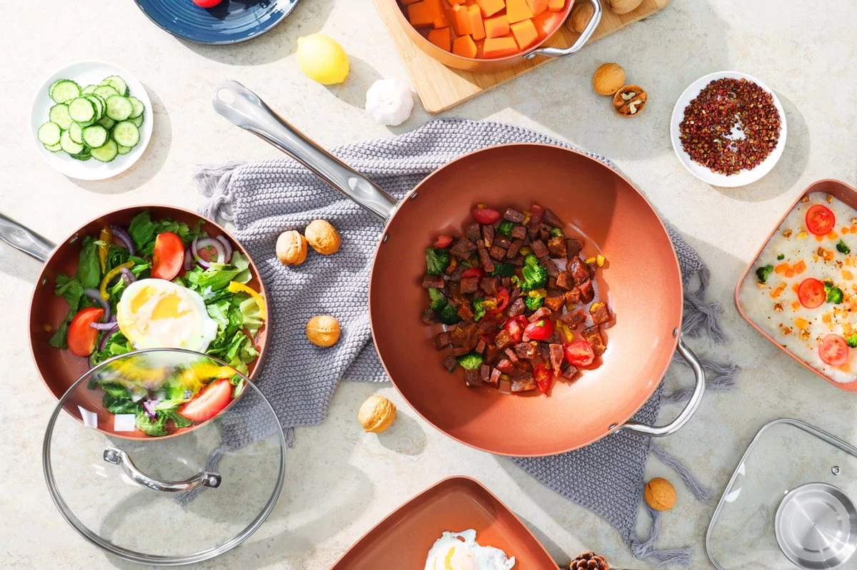 Swiss Pro+ – SP-WK28C – Aluminium Wokpan 28 cm – Geschikt voor alle Warmtebronnen – Koper
